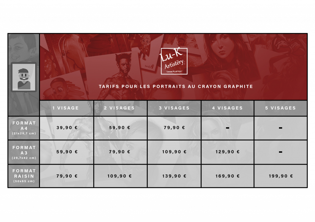 Le cadeau idéal à offrir à un proche ou à vous-même. Je vous propose mes services en tant que portraitiste, à partir de vos photos, je retranscris l’émotion et l’étincelle dans le regard de la personne. Je prends grand soin de vous satisfaire, minutieux dans les détails, je mets mes crayons et mon savoir faire à votre service.