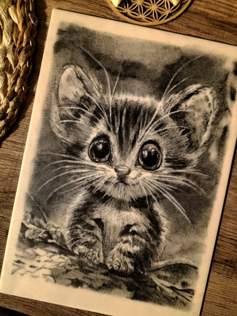 Réalisé avec machine à tatouer rotative DragonHawk Fold Pro sur peau synthétique reelskin format A5.